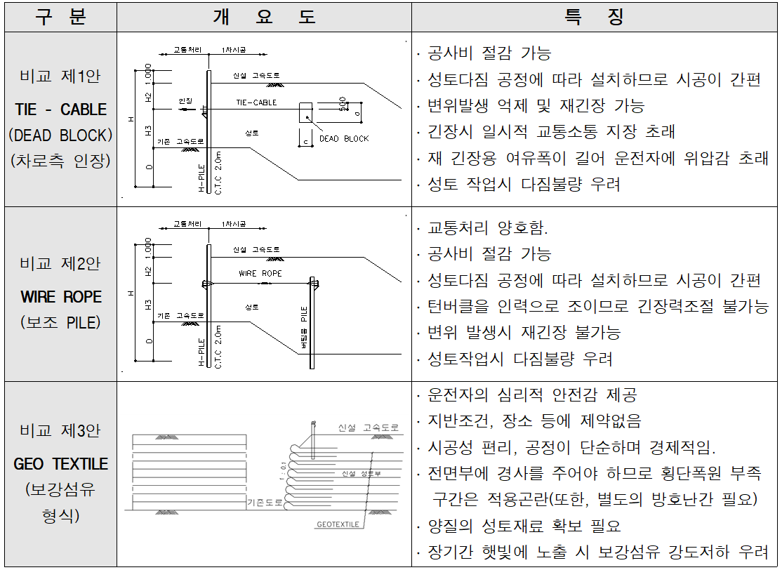 - 양호한 성토재료의 조달이 가능한 구간의 경우에 채택함.(부산-언양 제2공구 적용)